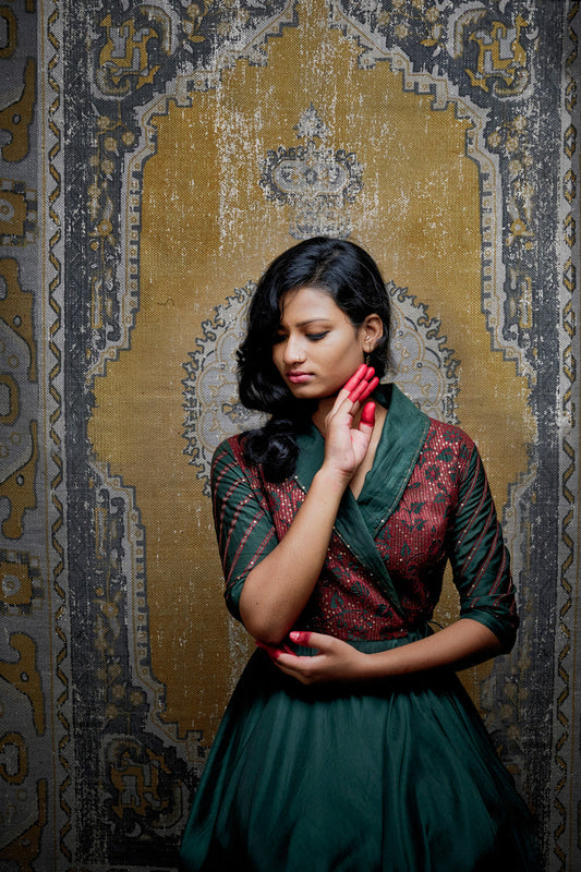 Tilli Bottle Green Saree