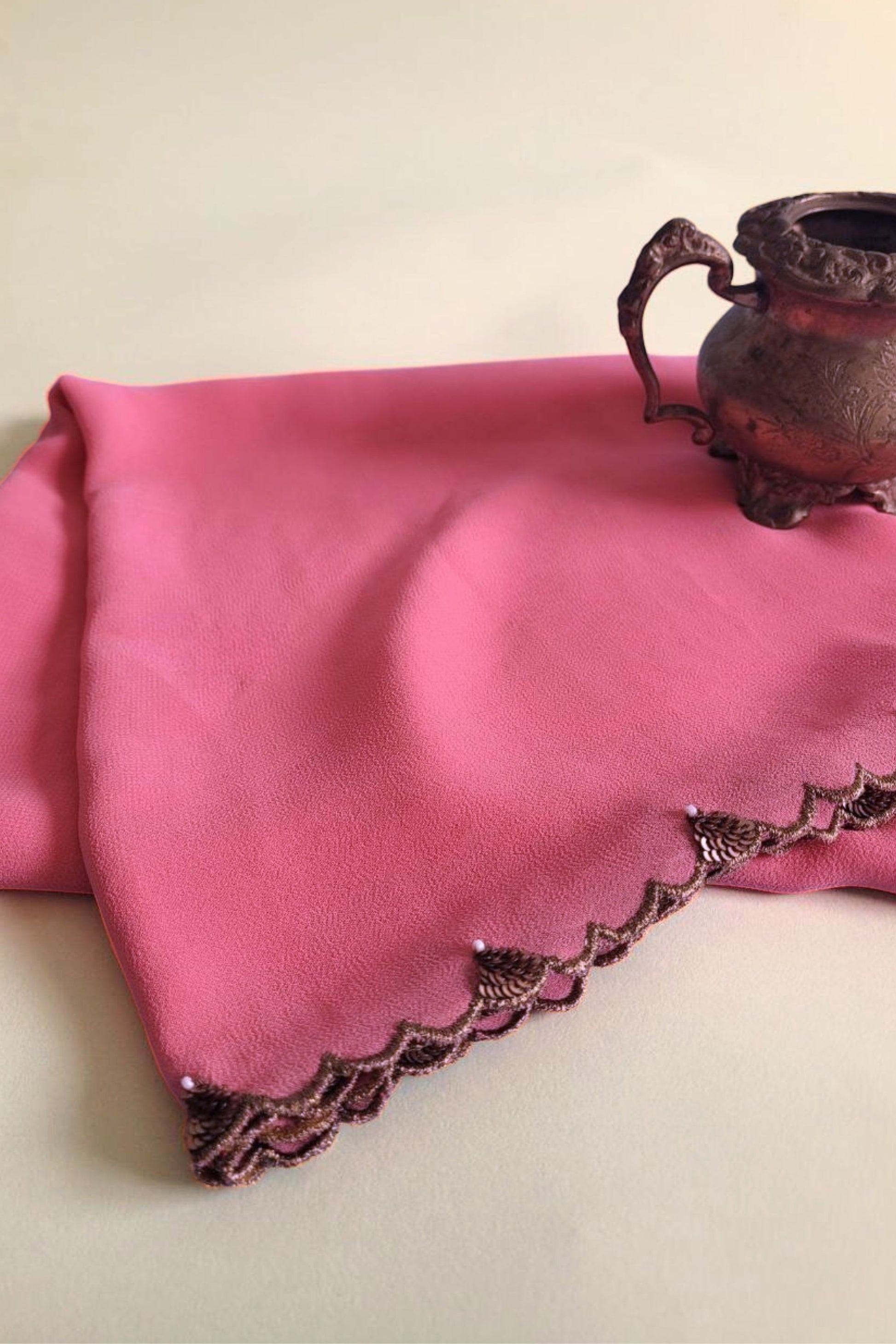 Color: Pink body with zari scallop