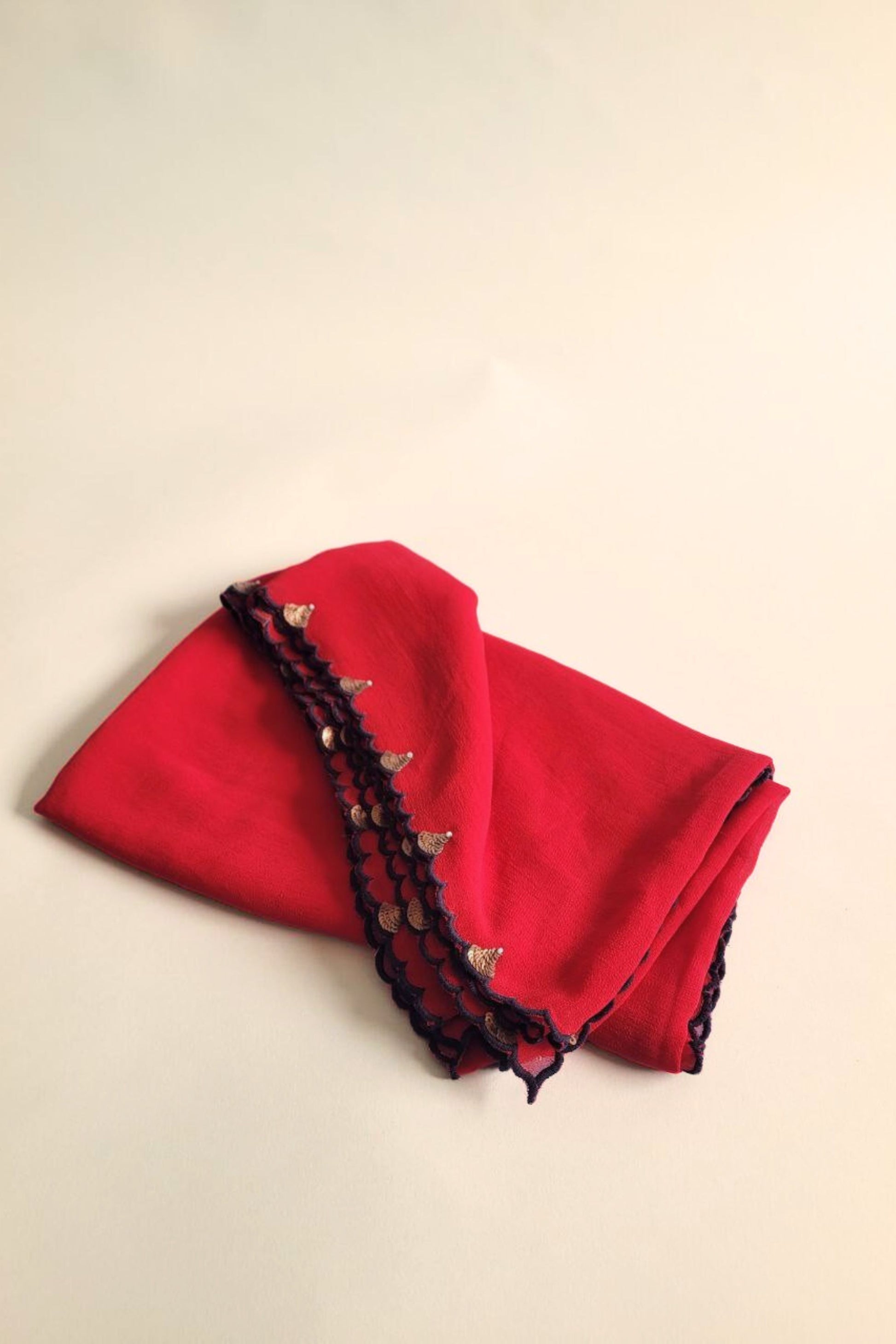 Hand Embroidered Dupatta-Chinh- Scarlet red